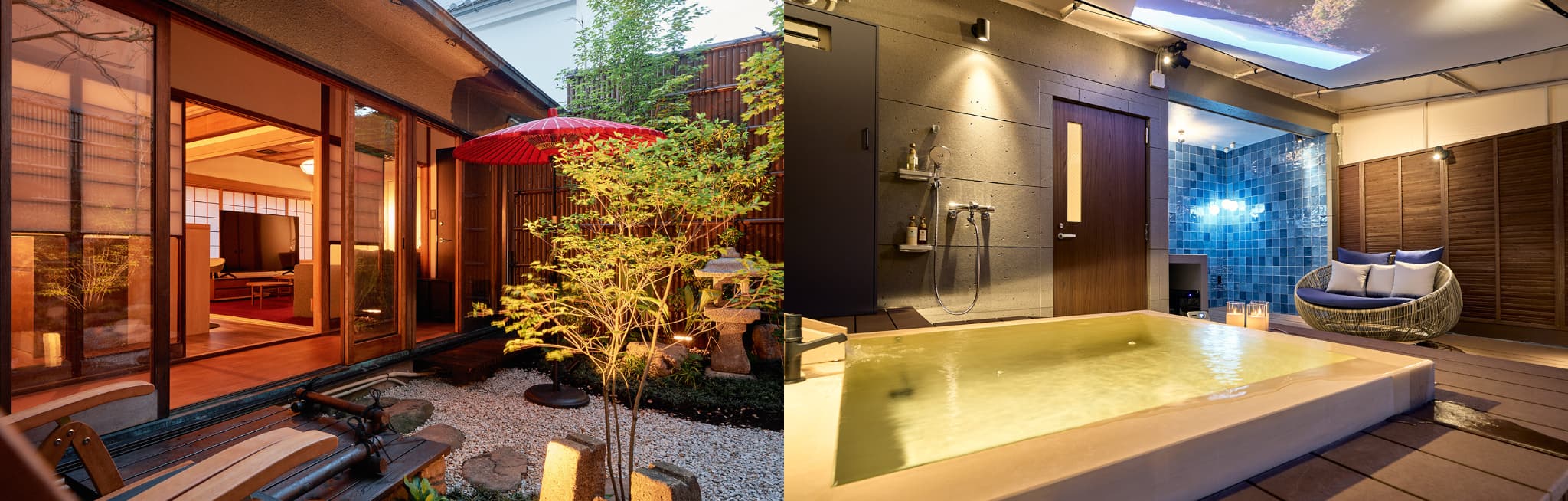空き家や空きテナントをルーフトップSPAやプロジェクションマッピング風呂など宿泊単価が高くても行ってみたいと思えるユニークな設備を備えた宿にリノベーションしています。